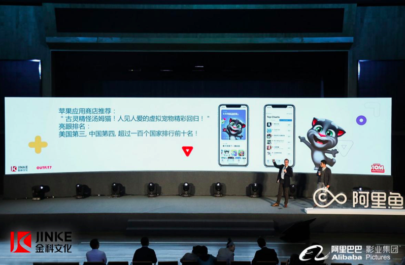 金科文化旗下Outfit7公司高管Nejc Babic作为金科文化代表,上台向几十家新闻媒体及接近300家天猫各类目头部商家与会嘉宾介绍了公司旗下IP“会说话的汤姆猫家族”的起源和发展,并详细地描绘了金科文化和该IP在未来的发展规划。会说话的汤姆猫家族作为本次大会唯一一个诞生于欧洲的IP,向参会者披露的信息以及大电影的发布计划等都引起了现场一阵阵“wow”的惊叹和掌声。